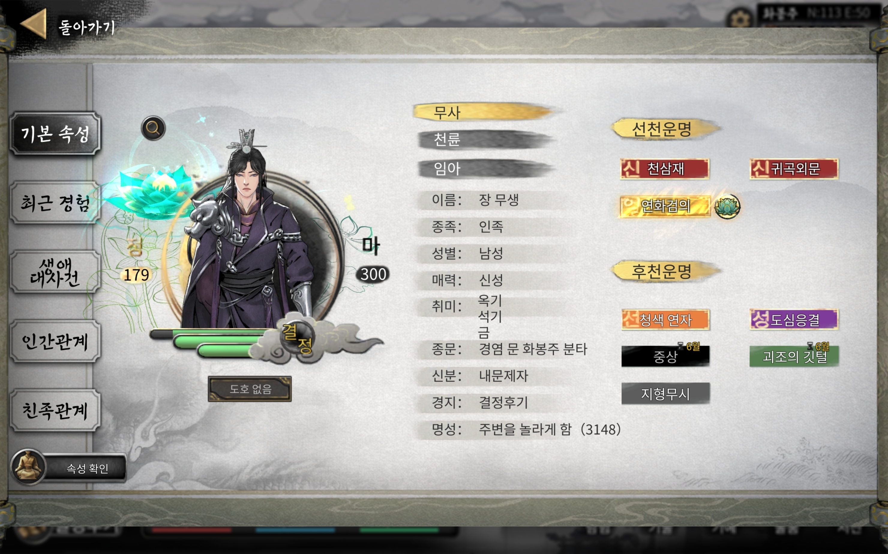 (?) 율: 학자집안, 여러가지 지술에 능함 (종이에 붓으로 기입하는 술법, 술식)